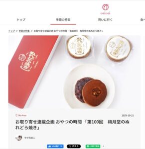 今回ご紹介いただいたのは「oriori」という四季おりおりの和菓子の美味しさや奥深さを、見て、聞いて、体験し情報を発信する和菓子情報メディアサイトで、せせさんの連絡は今回で100回となります。